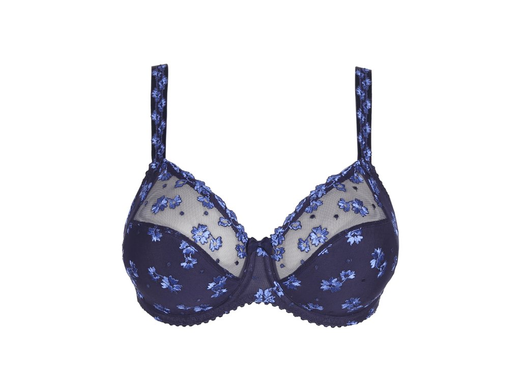 Podprsenka s kosticami Ray Of Light od PrimaDonna je dostupná vo farbe Blue Bijou. Táto krásna modrá podprsenka má vyšívaný motív v tvare kvetov. Ramienka sú tiež zdobené romantickou výšivkou. Táto podprsenka úplne zakryje vaše prsia a pekne ich vycentruje dopredu.