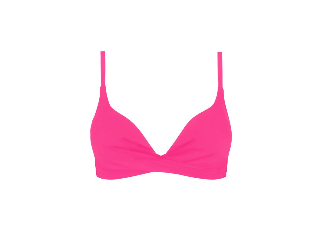 Vystužená plavková podprsenka bez kostice. Hlboký výstrih. Pohodlný a obohacujúci tvar. Viacpolohové popruhy.