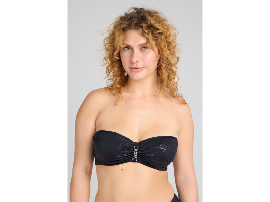 Plavková podprsenka Stellar v strihu Sexy-Fit vykúzli zvodný dekolt. Tenko vystužené košíčky s kosticami dodajú prsiam prirodzene guľatý tvar. Zaujme striebornou ozdobou medzi košíčkami a elegantnou čiernou farbou s lesklou potlačou. Na získanie dokonalého opálenia je možné nastaviteľné ramienka jednoducho odopnúť.
