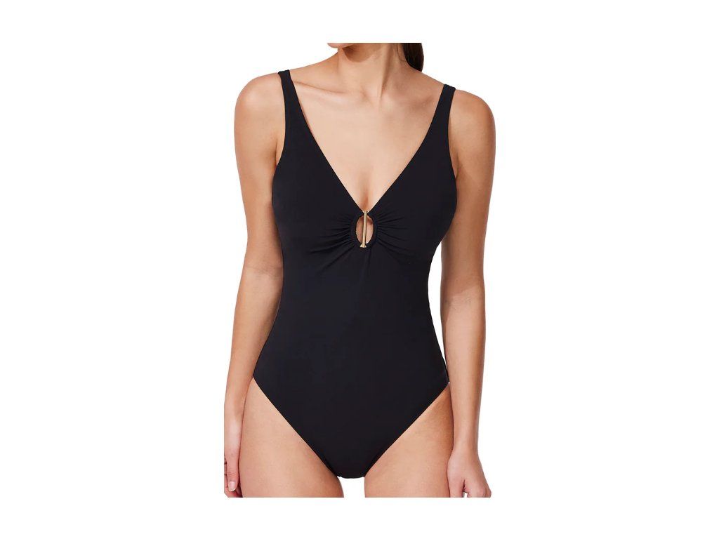 Povýšte svoju zbierku plaviek s plavkami Gottex. Navrhnutý s kľúčovým detailom a matnou zlatou ozdobou na hrudníku. Tieto plavky majú mäkké košíčky, nastaviteľné ramienka, spevnenú oblasť brucha a kompletnú podšívku. Pre dokonalý strih odporúčame zvoliť o jednu veľkosť väčšiu.