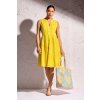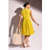 Šaty Kayla bez rukávov s jemnými čipkovanými ozdobami sú ideálne na chladné a všestranné leto. Vďaka minimalistickému dizajnu a predným gombíkom je tento kúsok nevyhnutný pre váš šatník. Je vyrobený z čistej bavlny a ponúka prirodzený a pohodlný vzhľad. Pridajte nádych elegancie s volánmi na midi šatách.